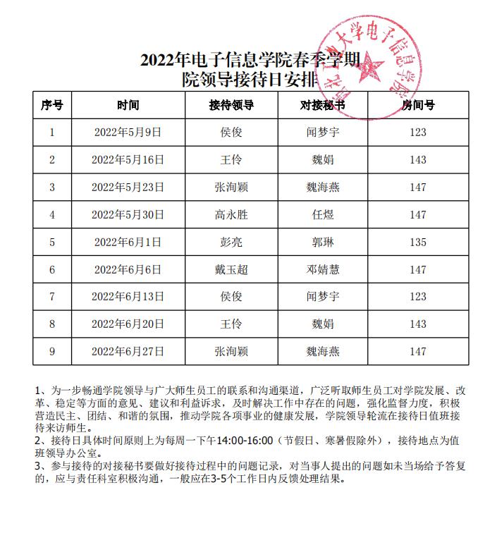 2022年走光 春季学期 院领导接待日安排