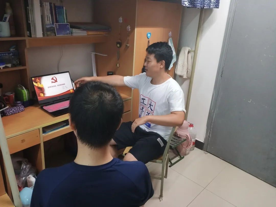 刘龙同学并没有回家,待在学校学习。所以他选择向宿舍中也没有返校的同学宣传我们的社会实践成果。