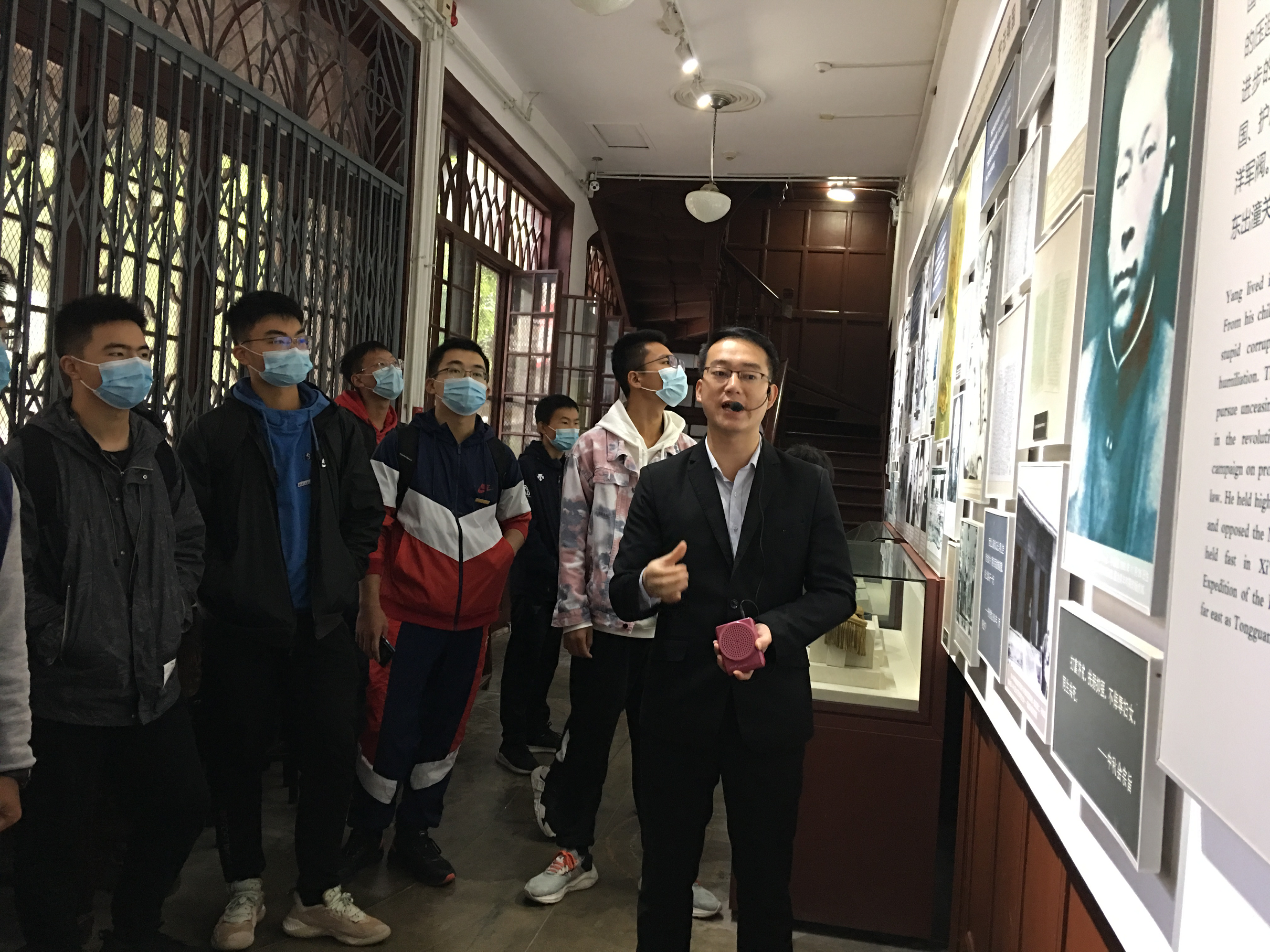 首先,早上八点师生们怀着激动的心情坐大巴从学校出发,一路上他们同唱《我和我的祖国》,在歌声中点燃爱国之心,也为这次红色教学拉开帷幕。到了杨虎城止园别墅已是9:45,参观途中,每个人都聚精会神地听讲解员的解说,时不时拍照、记笔记。从讲解中,同学们知道了中秋会、靖国军、西兰公路等等关于杨将军的丰功伟绩。其中令大家印象深刻的是“二虎守长安”的故事,西安城内的一万将士在粮食短缺的艰苦条件下,用顽强的意志与刘振华的十万军队殊死抗争,足足守了八个月。“怀沙秋子千秋烈,卫国捐躯一世豪”,杨将军为人民生,为人民死;以革命始,以革命终,他那崇高的爱国主义精神激励每一个人为祖国复兴而努力!