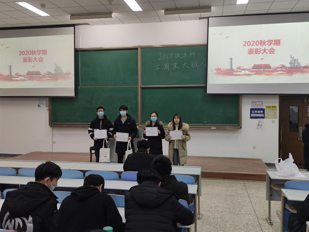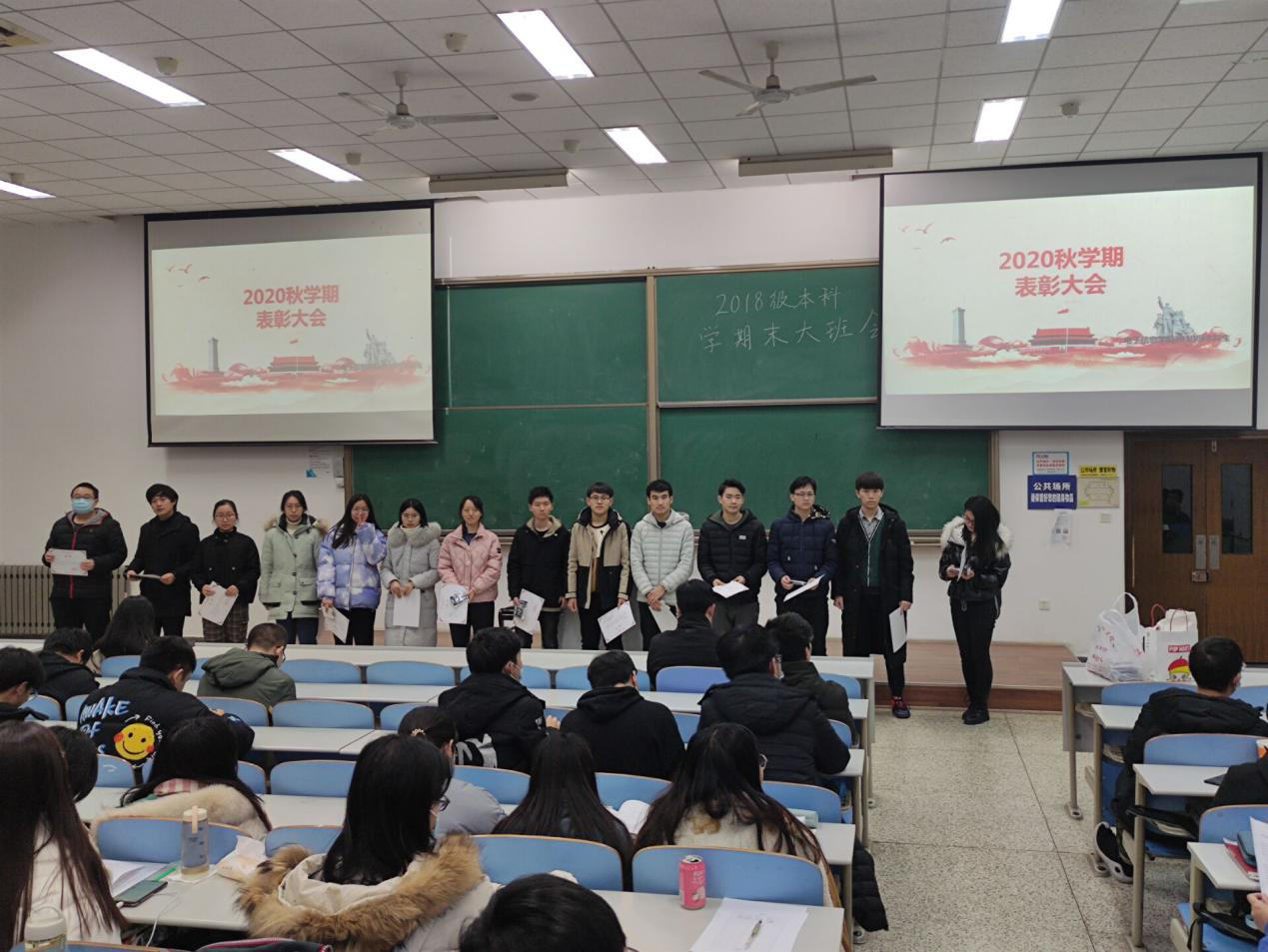 本次班会上还对同学们的党课和青年大学习情况进行总结,鼓励大家按时参加党课并完成青年大学习。 也对在2020年秋季学期在各类活动中表现积极突出的同学进行了表彰,分别对刘畅、郝静怡、宋书陟、张子强、杨晨宇、胡涵玥等25位同学的积极投稿进行表彰,对高婷、纪龙梦、于宏嘉3位优秀勤工助学助管进行表彰,希望其他同学以他们为榜样,再接再厉,不断取得新的更大进步。