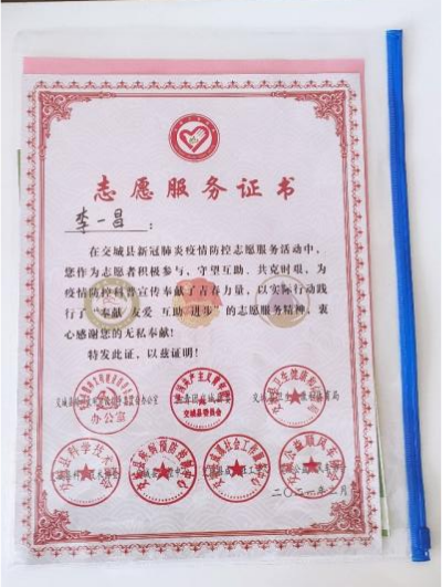 李一昌说:“作为一名大学生,在疫情常态化的当下,举国上下都在为疫情防控贡献着自己的力量。通过这次志愿活动,我了解到志愿者‘奉献、友爱、互助、进步’的精神,并且在实践中能够利用到我在学校学习的专业技能,自身也受到了激励,很有成就感!也更坚定了我努力学习,为祖国基层工作贡献力量的决心。读万卷书,更要行万里路!”