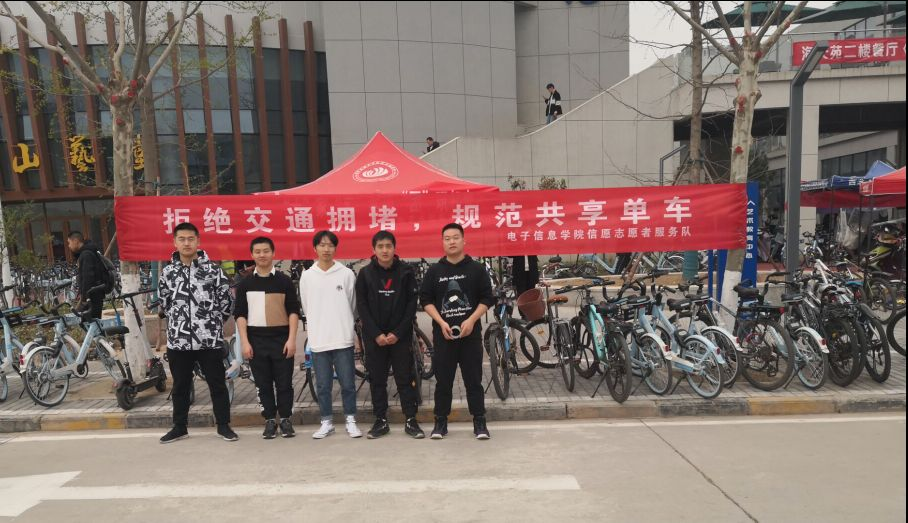 信愿志愿者服务队积极响应校团委的号召,开展”拒绝交通拥堵 规范单车停放“的”学雷锋“实践活动。
