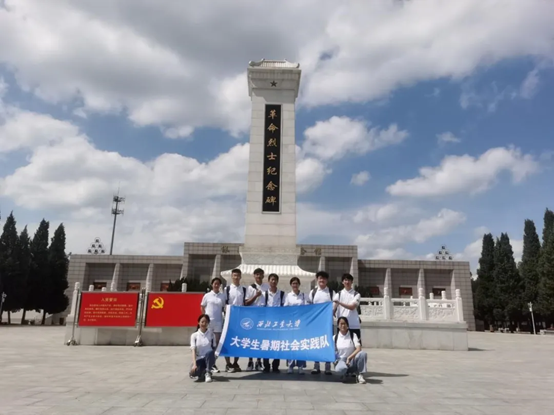 进入园区,一座雄伟而庄严的革命烈士纪念碑映入眼帘,巍峨地矗立在广场中央,令人肃然起敬。实践队在此领悟英雄们对理想与未来的美好追求,领悟共产党员为革命舍生忘死的坚定信念与斗争精神。