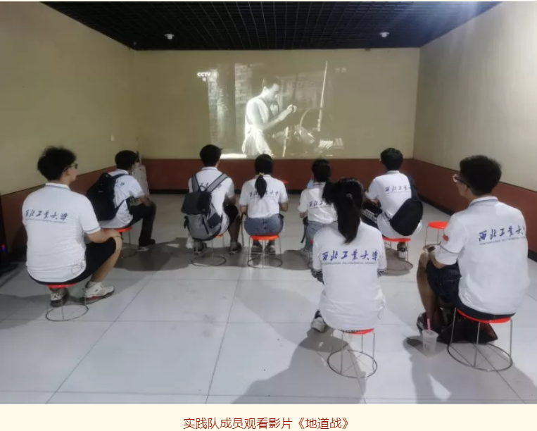 最后,实践队集体观看了《地道战》电影,对当时地道战人民的生活有了更深入的了解。观影结束后,李岩松和王雪洁同学还沉浸在对电影情节的讨论中:“电影以生动的形式让我们再次体会到了地道战的由来与发展,我们的情绪也被电影深深牵动着。当看到村民们成功挖出隐蔽的地道口时由衷地为他们感到开心,当看到地道战中牺牲的烈士们时内心又不由得感到痛心与惋惜。”