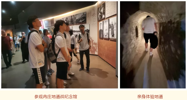 为切实体会地道战的精巧与艰辛,实践队成员进行了亲身体验。地道入口段高约一米七,宽约一米,内部漆黑,只有小灯提供照明,高个子同学转向都略微困难。随着地道的深入,高度又逐渐降低至约一米五,行进变得更为不易。王廷骥同学出地道后说:“刚开始感到新奇,但100米后就体会到了弯腰走路的艰辛。当年的地道还没有这么坚固,墙壁上没有水泥加固。回想先辈们整日伴随着地面上的炮火,在狭窄的地道中来回穿梭,他们的革命精神令人敬佩。”