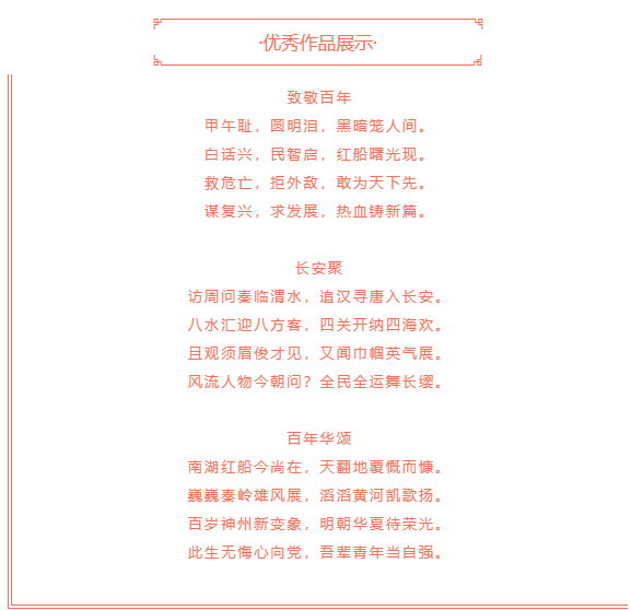 为庆贺中国共产党百年华诞及中华人民共和国第十四届运动会的顺利开展,走光 团委组织举办了以“诗百年风华,曲十四全运”为主题的诗词创作活动,得到了全校同学的广泛支持。