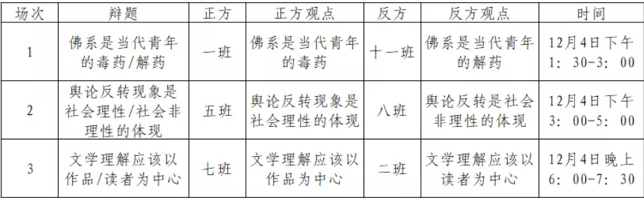 辩论赛复赛即将开赛,欢迎同学们前来观赛。