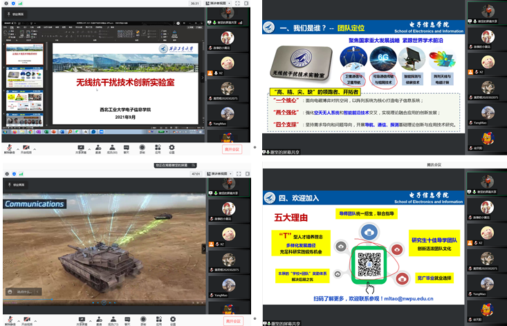 谢坚老师介绍了学院“无线抗干扰技术创新实验室”的团队定位、人才培养模式、研究方向等,并通过几段短视频形象地向同学们展示了探测定位、干扰与抗干扰在电子对抗战中的广泛应用。