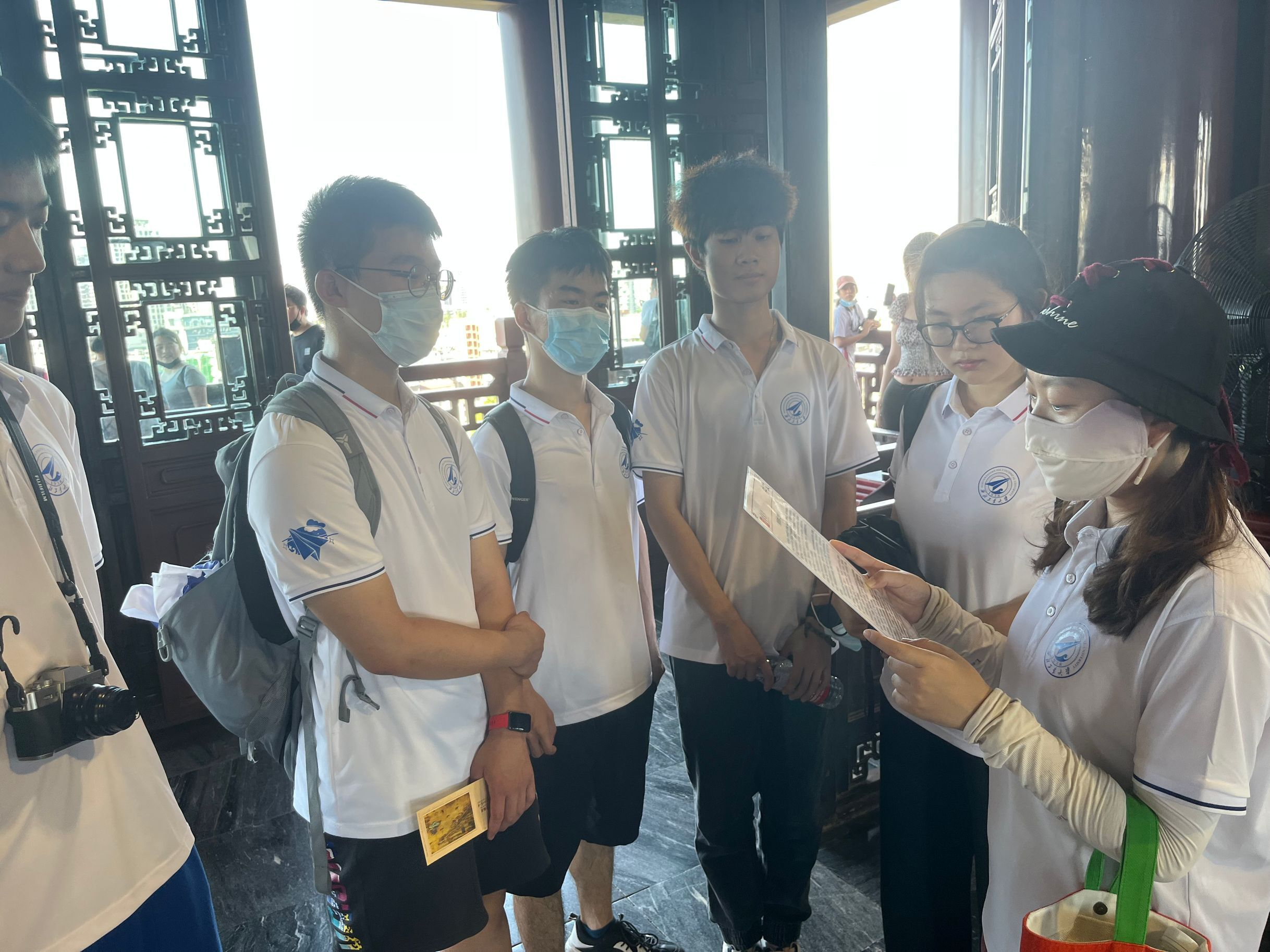 黄鹤楼,这座天下第一楼,见证了风云变幻,遍历了世间沧桑。登上入口的台阶,映入眼帘的便是诗词长廊,队员们品读墙上诗句,品析韵律与文字。长廊尽头,与“搁笔亭”相对的,是刻有《黄鹤楼》诗词的石壁,在这里,实践队员深入了解了“崔颢题诗李白搁笔”的千古佳话。