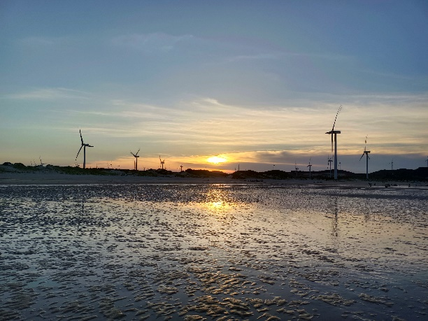 下午2时,实践队员抵达福州平潭岛。平潭岛是我国第六大岛,素有“千礁岛县”之称。平潭岛东面与中国台湾省新竹港相距仅68海里,是中国大陆距台湾省最近处,成为了中国东南海疆对台经贸和人文交往的重要窗口。实践队员先后抵达象鼻湾和长江澳风力田景观区,远望产能设备排布,近观渔民捕鱼,近距离体会感悟两岸和平发展的良好氛围。隔海相望,仿佛宝岛台湾已近在眼前。