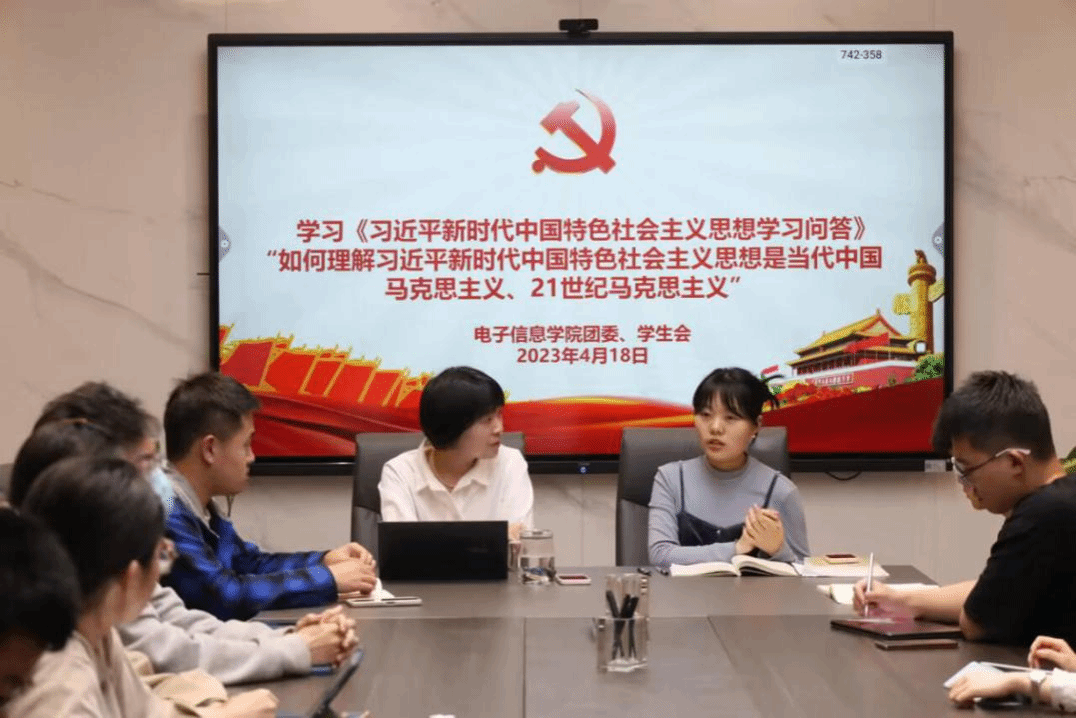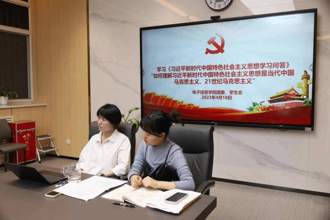 图为团委学生会骨干集体学习“如何理解习近平新时代中国特色社会主义思想是当代中国马克思主义、21世纪马克思主义”