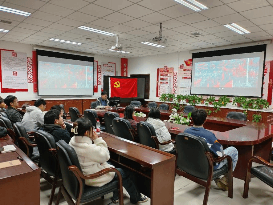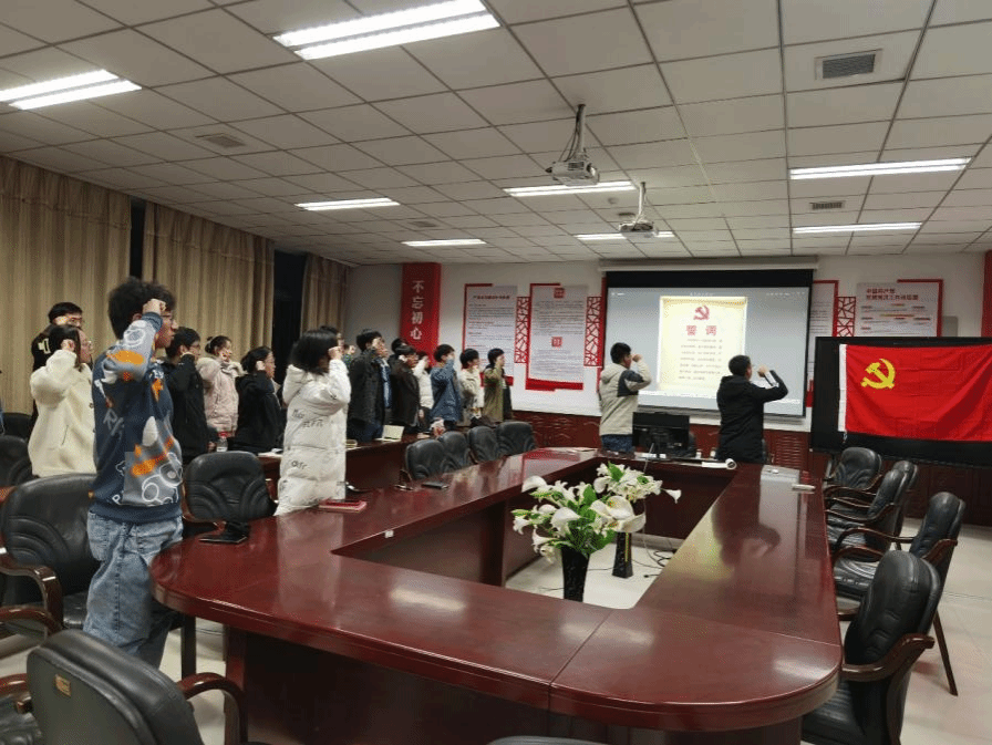 会议开始,支部书记陈爽同志带领同志们观看了建党百年时人民日报发布的《少年》短视频,旨在让支部成员深刻体验先辈们取得革命胜利的艰辛和不易,更重要的是,让同学们能够从革命先烈的身上学习他们坚定的意志和不屈不挠的精神。紧接着,组织委员苏泰安带领支部成员重温入党誓词,砥砺初心使命,牢记党“全心全意为人民服务”的宗旨。