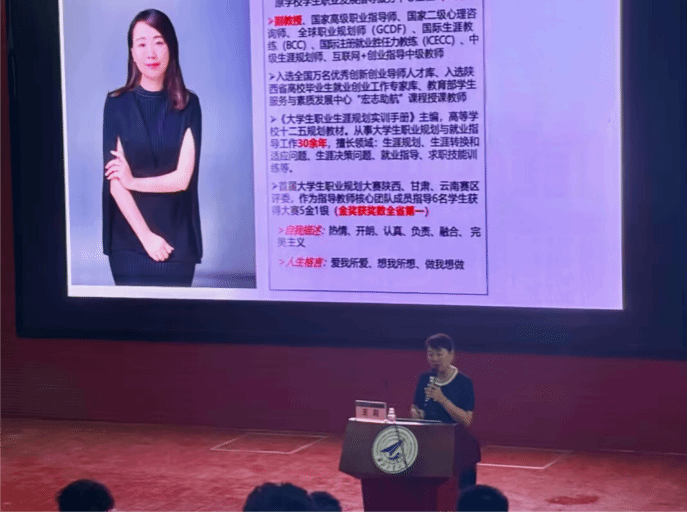 王莉结合自身多年从事职业规划指导的经验和往届优秀学生的事例,引导新生直观了解到职业生涯规划对于大学生成长、成才、成功的重要意义,介绍如何根据自身兴趣与专业背景选择合适的就业方向。她勉励大家“大学虽苦,但不妨碍我们把它过得朝气蓬勃”“努力到竭尽全力!拼搏到感动自己!”