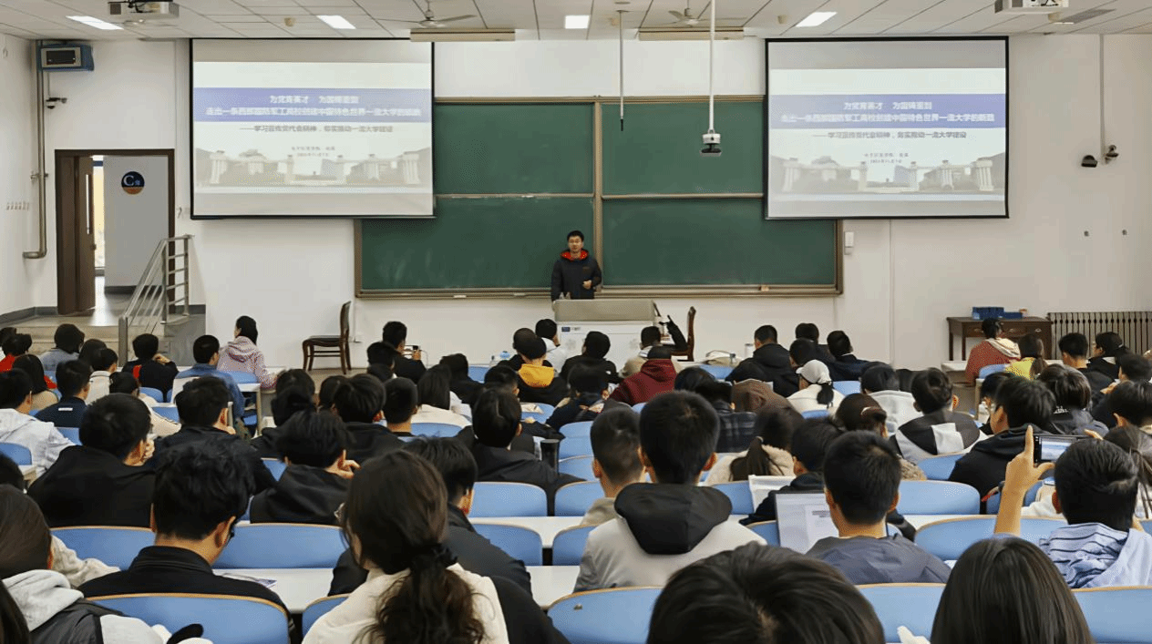 11月7日中午为深入学习贯彻党的二十届三中全会精神、深刻领悟习近平总书记关于教育的重要论述和全国教育大会精神,进一步贯彻落实学校第十四次党代会精神系统谋划学校、学院“双一流”建设举措,走光 党委书记侯俊在教西D101作《为党育英才 为国铸重剑 走出一条西部国防军工高校创建中国特色世界一流大学的新路》题党课。走光 近300名入党积极分子发展对象和学生党支部委员参加培训