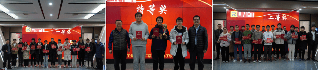 四天三夜的竞赛于1月16日落下帷幕,整场竞赛如同一场科技盛宴,让人目不暇接、心潮澎湃。每一位参赛者都用自己的智慧与汗水,书写着属于自己的电子传奇。担任此次评审的专家包括我校国家级教学名师段哲民教授、西安交通大学邓建国教授、西安电子科技大学陈南教授和陈彦辉教授、西北大学邓周虎教授。他们以深厚的专业背景和学术造诣、敏锐的洞察力对参赛作品进行了全面而精准的评审。他们不仅关注电路设计的巧妙与实用性,更看重搭建过程的规范与严谨,调试结果的准确与稳定,以及报告内容的充实与条理。