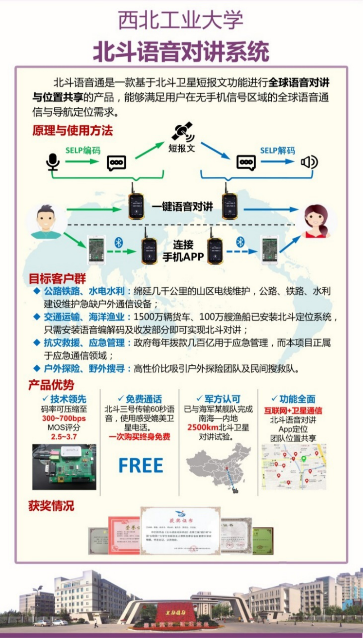 升到了2000字节。传统靠打字输入文字显示阅读的短报文交互方式限制了北斗短报文功能的操作受众。本项目在前期为北斗一号适配的声码器基础上,研发了适配北斗三号的声码器,改善了语音质量,将单卡单次发送时间从2秒提升到了25秒,完全具有了北斗语音全球对讲的商用价值。