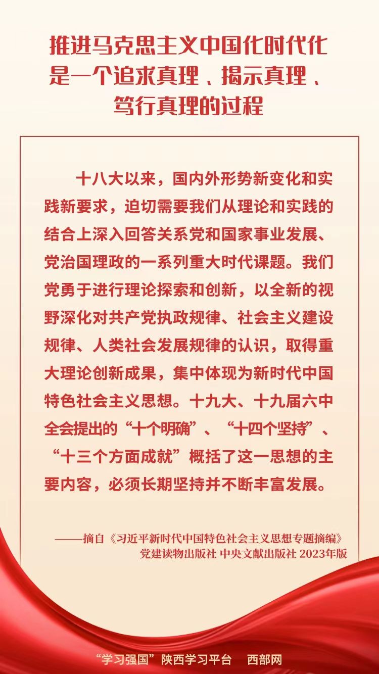 【学习卡片】推进马克思主义中国化时代化是一个追求真理、揭示真理、笃行真理的过程