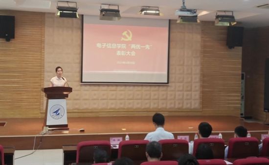 在报告厅召开庆祝中国共产党成立103周年暨“两优一先”表彰大会。学院领导班子成员、党委委员、各支部委员、获奖先进个人代表、师生党员代表以及党外人士代表参加大会。大会由学院党委副书记高敏主持。