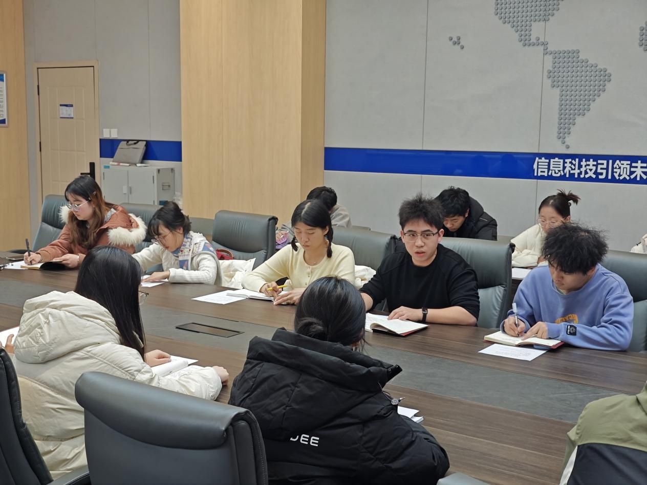 高敏带领大家学习了党的二十届四中全会精神,围绕“十五五”时期经济社会发展的重大意义、指导方针和主要目标、重大战略任务等四个方面进行了领学。会议要求,要把学习贯彻全会精神作为当前和今后一个时期的重大政治任务,各支部要全覆盖、多轮次的开展学习宣传;全体学生党员要以全会精神为行动指引,立足专业学习,增强科研能力,为高质量推进中国式现代化贡献自己的力量。