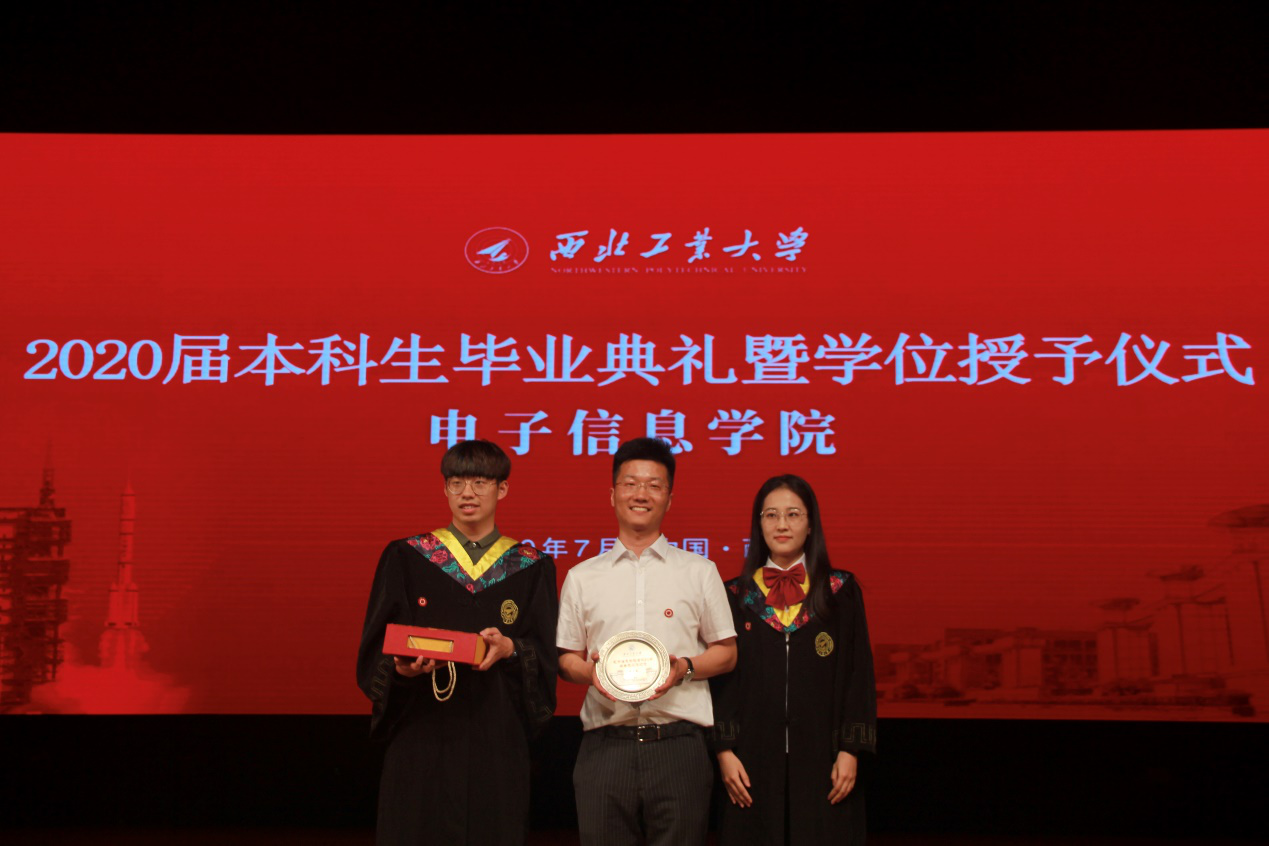 学院决定授予高永胜老师“首批F1岗辅导员工作纪念牌”。春风化雨,师恩难忘,毕业生代表谭佳俊和乔宁将纪念牌送到辅导员手中。