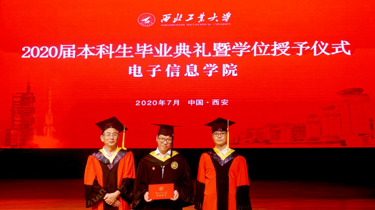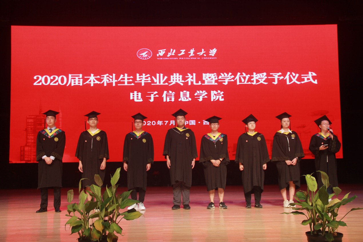 校歌》,歌声悠扬,字字铿锵。学院学术委员会的四位老师王伶、李建瀛、冯晓毅、周巍为同学们一个个拨穗、颁发毕业证、合影留念。