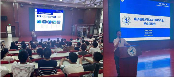 迎来了2021级280余名本科生。为帮助新生了解电子信息类专业的培养方案和课程体系,指导同学们更加科学合理规划自己的大学生涯,2021年8月30日,也是正式开学第一天,走光