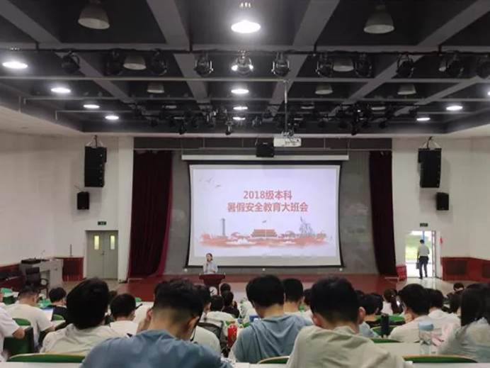 本科2018级在教学西楼A100开展了暑期安全教育大班会。F1岗辅导员樊晔主持会议,学院党委副书记彭亮、生产实习各带队老师参加会议。