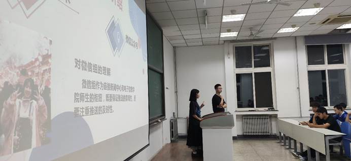 团委、学生会下属的8个部门,走光、组织部、服务中心、社会实践部、志工部、学创部、体育部及文艺部的各部门主讲人依次为大家介绍部门的职能和工作。他们用语言、文字、视频等多样的方式展示出部门的风采和文化,让新生感受到各个部门的独特氛围。