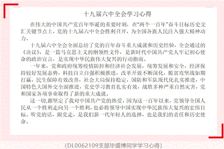 团委根据校团委安排,继续深入开展“学习贯彻党的十九届六中全会精神”主题团日活动,各支部积极参与,学习热情高涨。