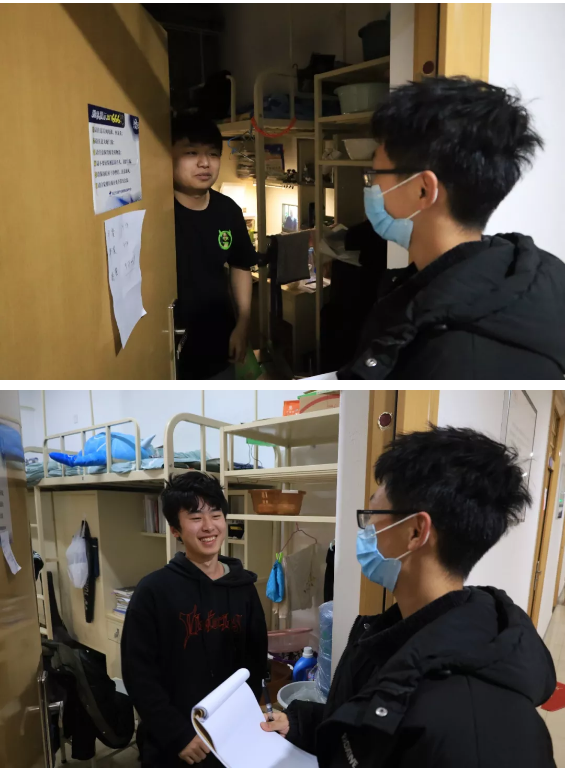 团委、学生会的同学一同调查和统计海天苑2号楼B区各个宿舍的核酸检测情况以及他们生活上的困难与需求,并将它们如实上报。