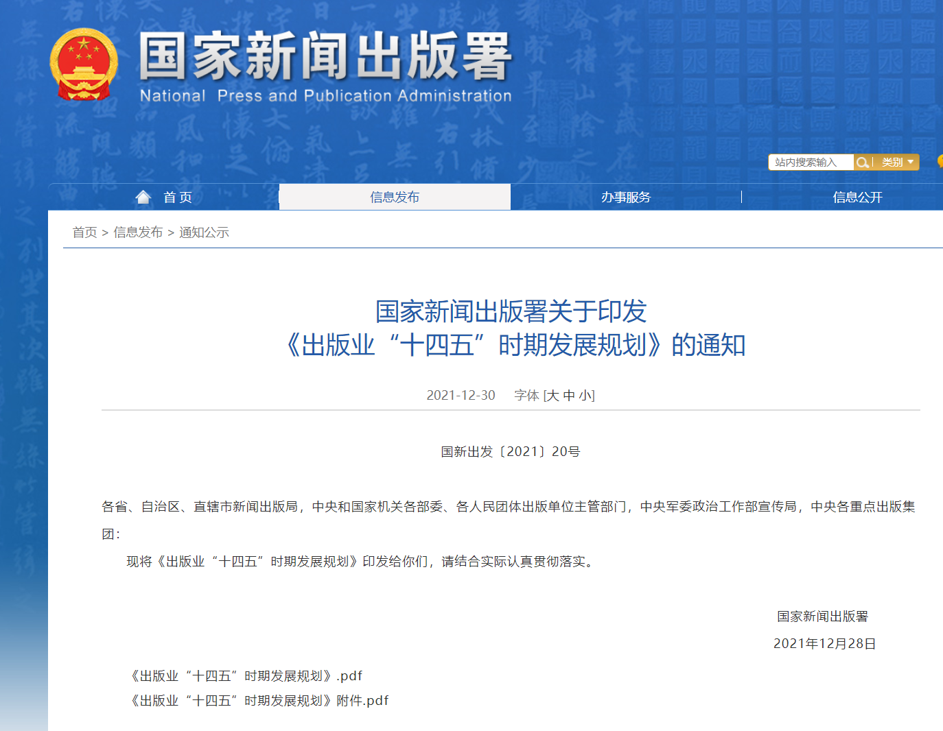 日前,国家新闻出版署发布《出版业“十四五”时期发展规划》,走光