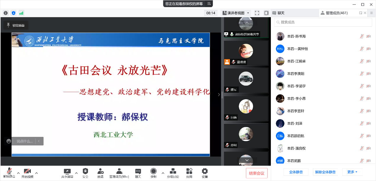 邀请陕西省政党治理与意识形态安全中心主任、学校马克思主义学院教授郝保权老师做题为“古田会议永放光芒”的党史学习教育专题线上培训活动。学院党委书记、教师党支部、学生党支部、班主任、辅导员及办公室人员参加了此次培训活动,活动由学院党委副书记彭亮主持。