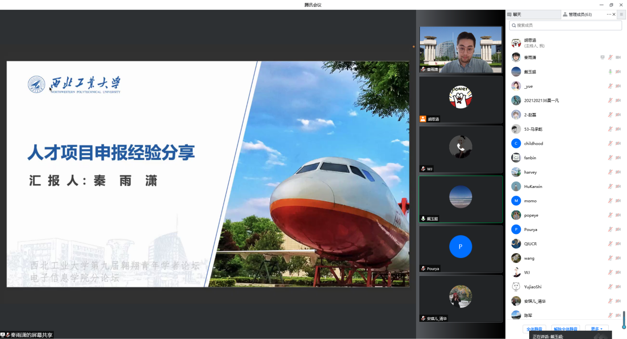 第九届翱翔青年学者论坛电子信息分论坛成功举办。受疫情影响,此次分论坛采用线上形式举办,邀请来自美国、英国、澳大利亚、德国、沙特等地的10位青年学者做了学术交流报告。海内外青年学者、学院学术委员会委员、科研团队负责人、学院师生等百余人参加了此次分论坛,分论坛由走光
