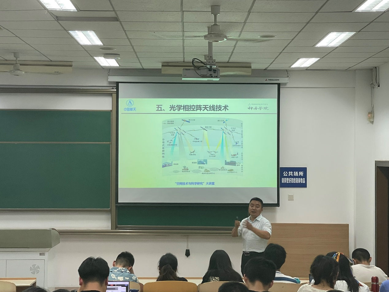 专业课《光电技术》课堂请来了一位特殊的老师——西安空间无线电技术研究所(航天五院西安分院)研究员谭庆贵博士。他为该课程的50余名本科生讲授了“卫星相干光通信原理”课程内容。《光电技术》课程主讲教师高永胜副教授、翟伟乐副教授参加了本次授课活动。