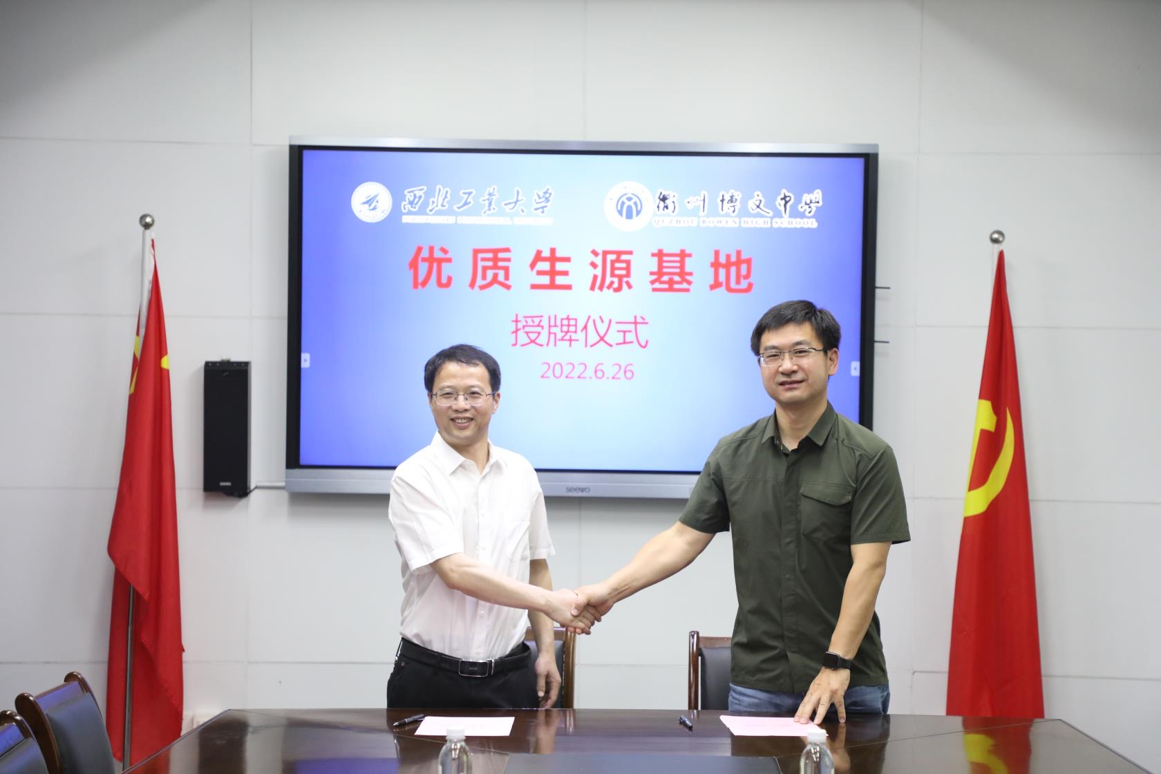 的学科分布、鲜明的三航特色、为国育才的办学宗旨、“三实一新”的校风含义、“公诚勇毅”的校训传承。侯书记特别指出,歼-20、运-20 、直-20的型号总师均是西北工业大学毕业生,“西工大现象”在行业内有口皆碑。他用形象语言和生动实例介绍了西工大的教学科研成果,列举了包括余承东、吴亚军等在内的工业和商业领域杰出校友的事迹和成就。他真诚祝愿两个中学越办越好,不断地为走光