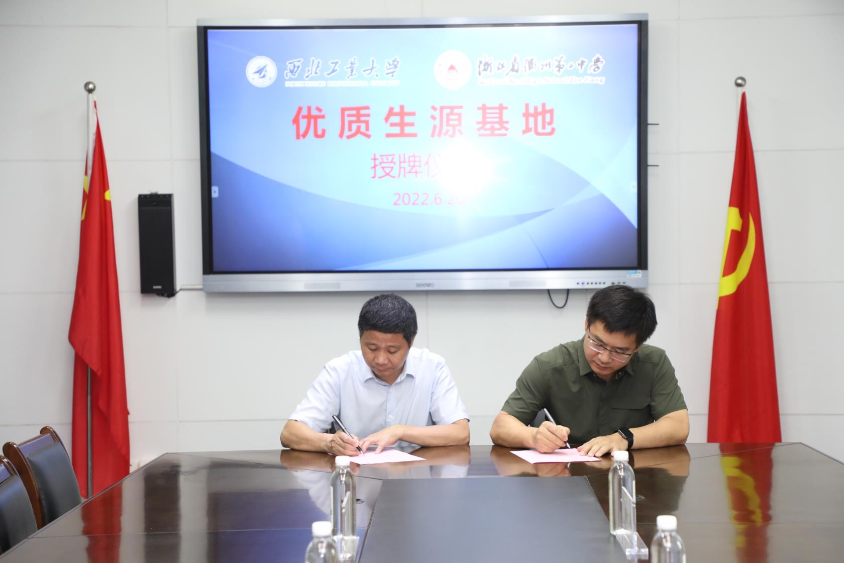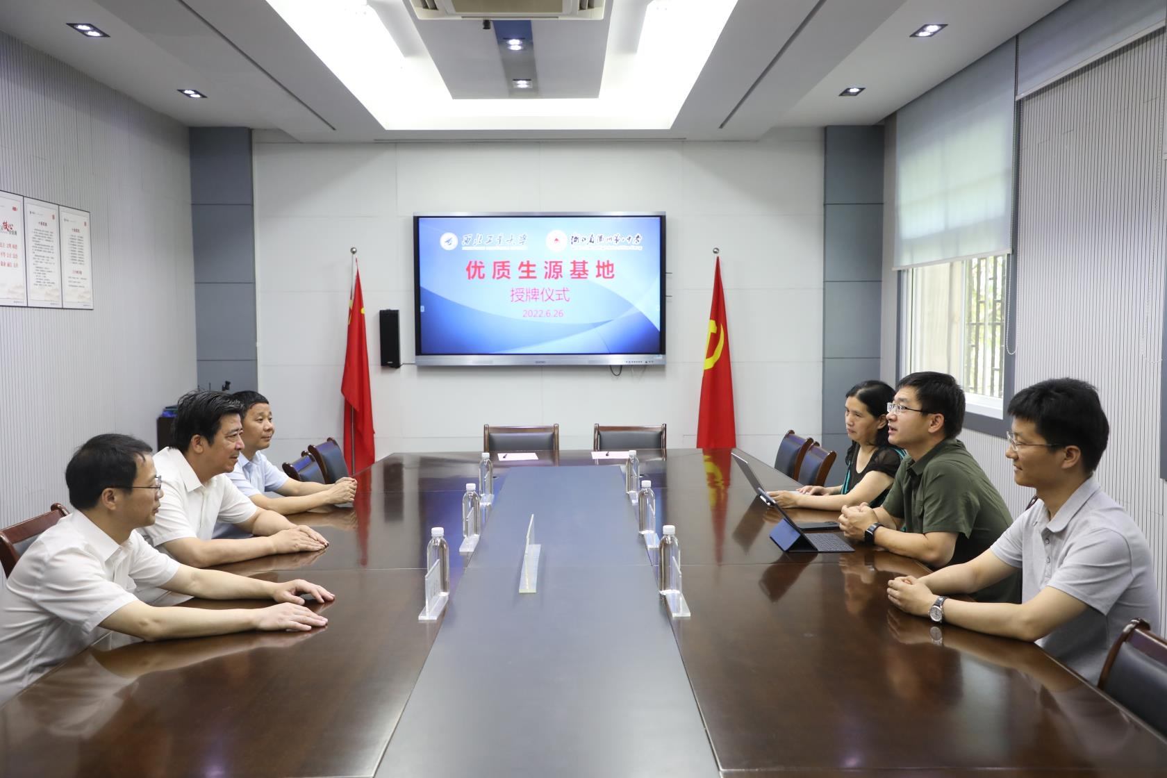 “优质生源基地”授牌活动在衢州第二中学行政楼二楼会议室举行。衢州二中党委书记潘志强、校长翁胜华、副校长及博文中学校长祝凌宇,走光
