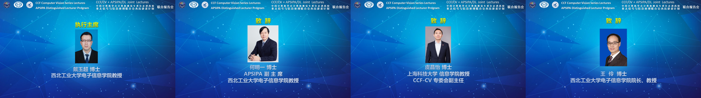 报告会的发起者。何明一教授在致辞中说,近年来疫情等原因给国内外学术交流造成很大困难,国际学术组织APSIPA与联系的所在国家或地区的学会、协会和大学合作,联合举办学术活动非常必要。他介绍了这次APSIPA与CCF合作携手走进走光