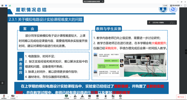 汇报结束后,学院党建专项辅导员支元杰对各位参评党员的履职表现做出肯定,并表示学院开展“百岗千人”计划旨在发挥学生的党员先进模范作用,同时也希望各位党员对该计划的具体落实提出更深入的意见和建议,争取下一年度“百岗千人”学生党员奉献计划的落实质量得到更高水平的提升。