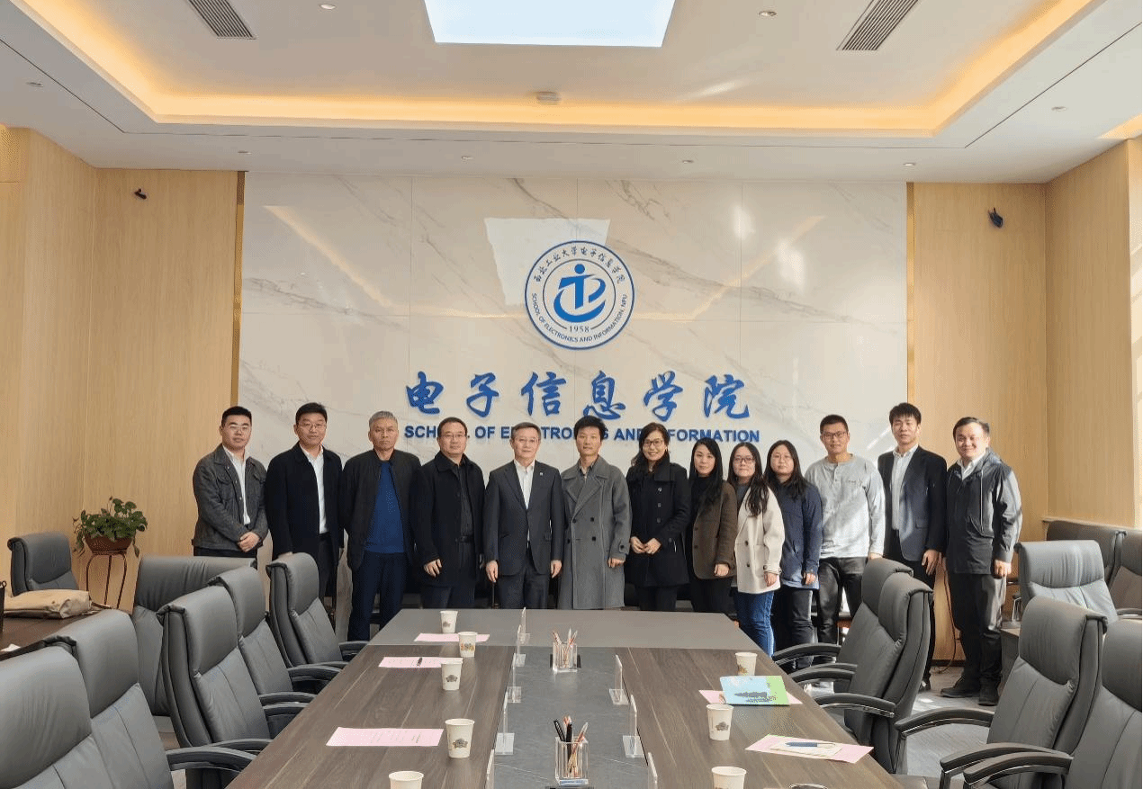 楼119会议室举行校企合作交流会。普源精电董事兼总经理王宁、中国区总经理马军、教育计划经理江佳慧,走光
