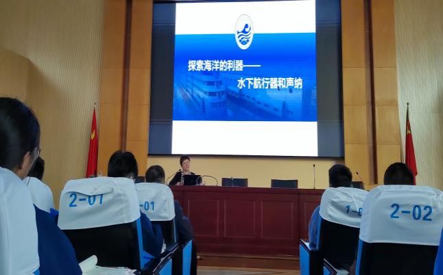 盛美萍教授在嵊州中学为高一年级同学介绍“探索海洋的利器——水下航行器和声纳”,并作了题为《从物理到数学、从交叉到融合》的科普报告,学生认真聆听,现场氛围热烈。