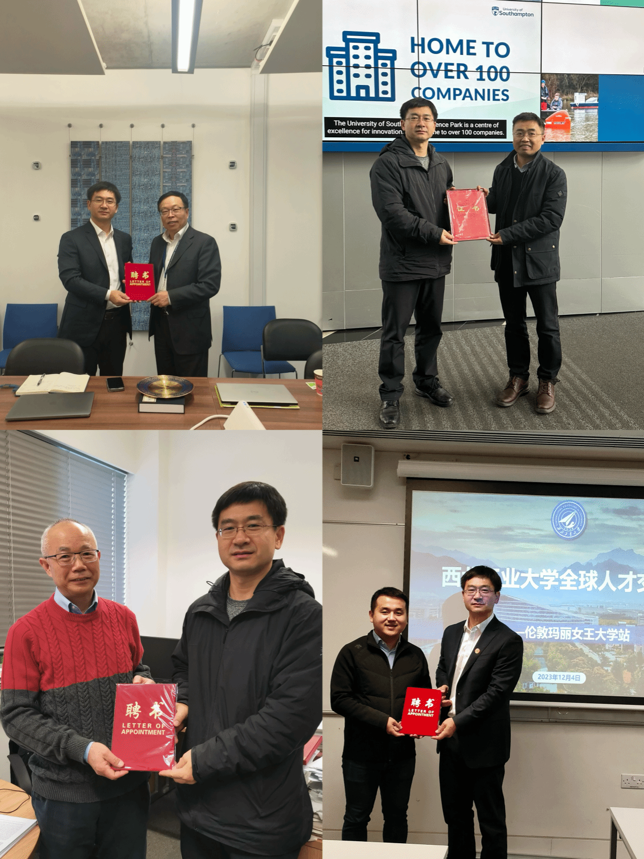 12月4-8日,学院还赴英国萨里大学、伯恩茅斯大学、南安普顿大学、兰卡斯特大学等高校开展系列合作交流活动。聘任萨里大学第六代移动通信创新中心首席科学家孙智立教授、伯恩茅斯大学高级讲师张建康、南安普顿大学电子与计算机科学学院杨列亮教授为学院引才大使。