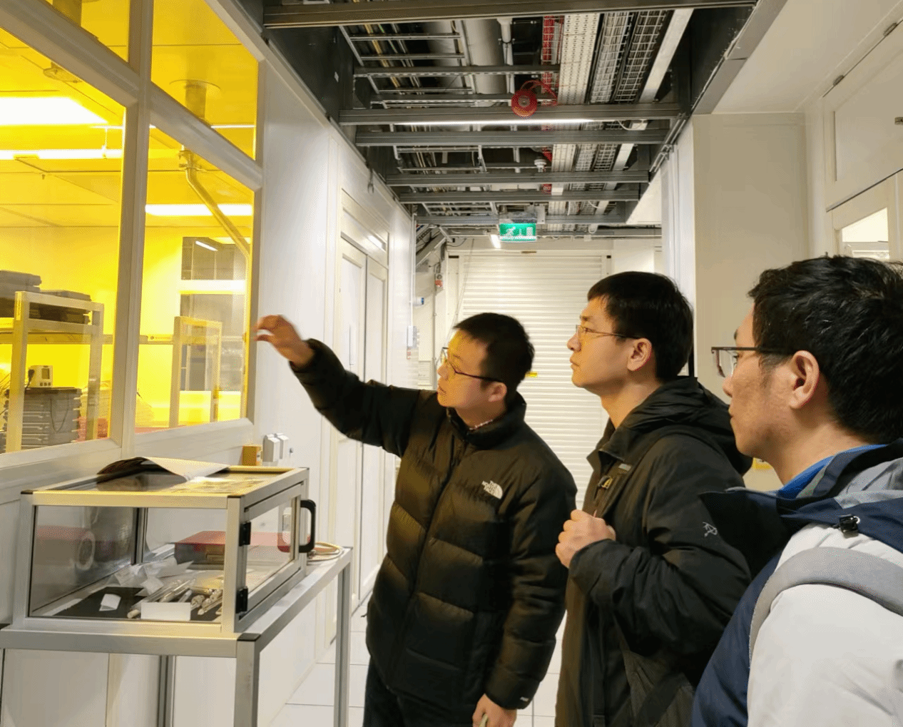 学院交流团参观了萨里大学全球领先的第六代移动通信创新中心和南安普顿大学电子与计算机系光电研究中心的730平方米超净实验室(目前属于全欧洲大学中最大最先进的超净实验室)。