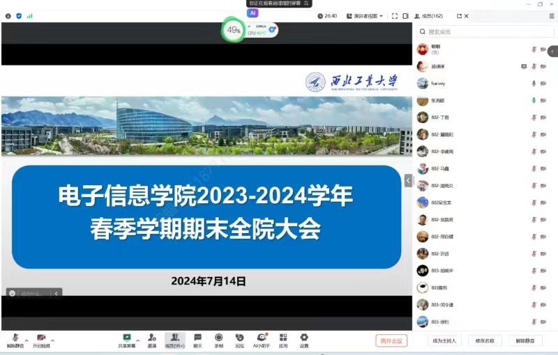 线上召开了2023-2024春季学期期末全院大会,会议传达了学校2024年上半年工作总结会会议精神并安排部署了暑期重点工作。学院领导班子及全体教职工参加会议,会议由院长张洵颖主持。