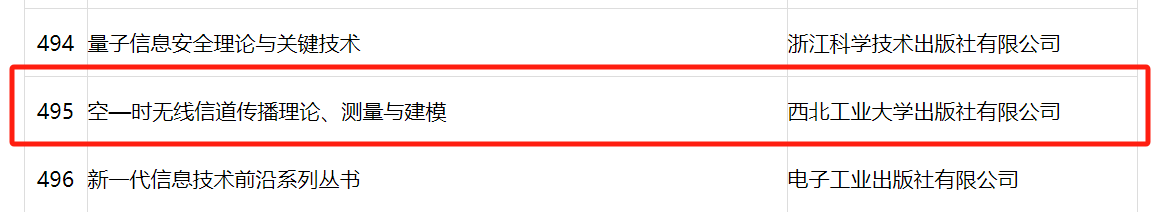 张若南教授等编著的《空-时无线信道传播理论、测量与建模》成功入选。这是继2021年入选"十四五"国家重点出版物出版规划后,该著作获得的又一重要学术认可。