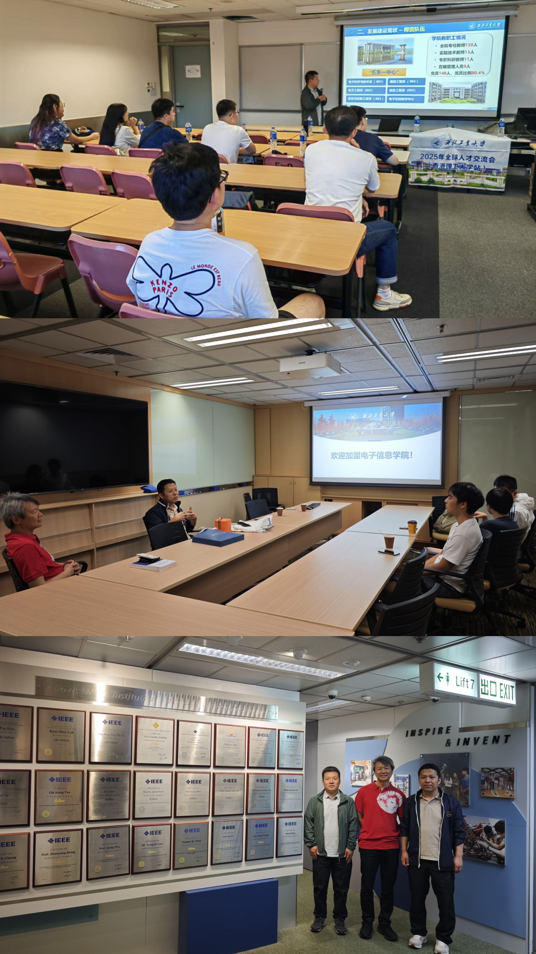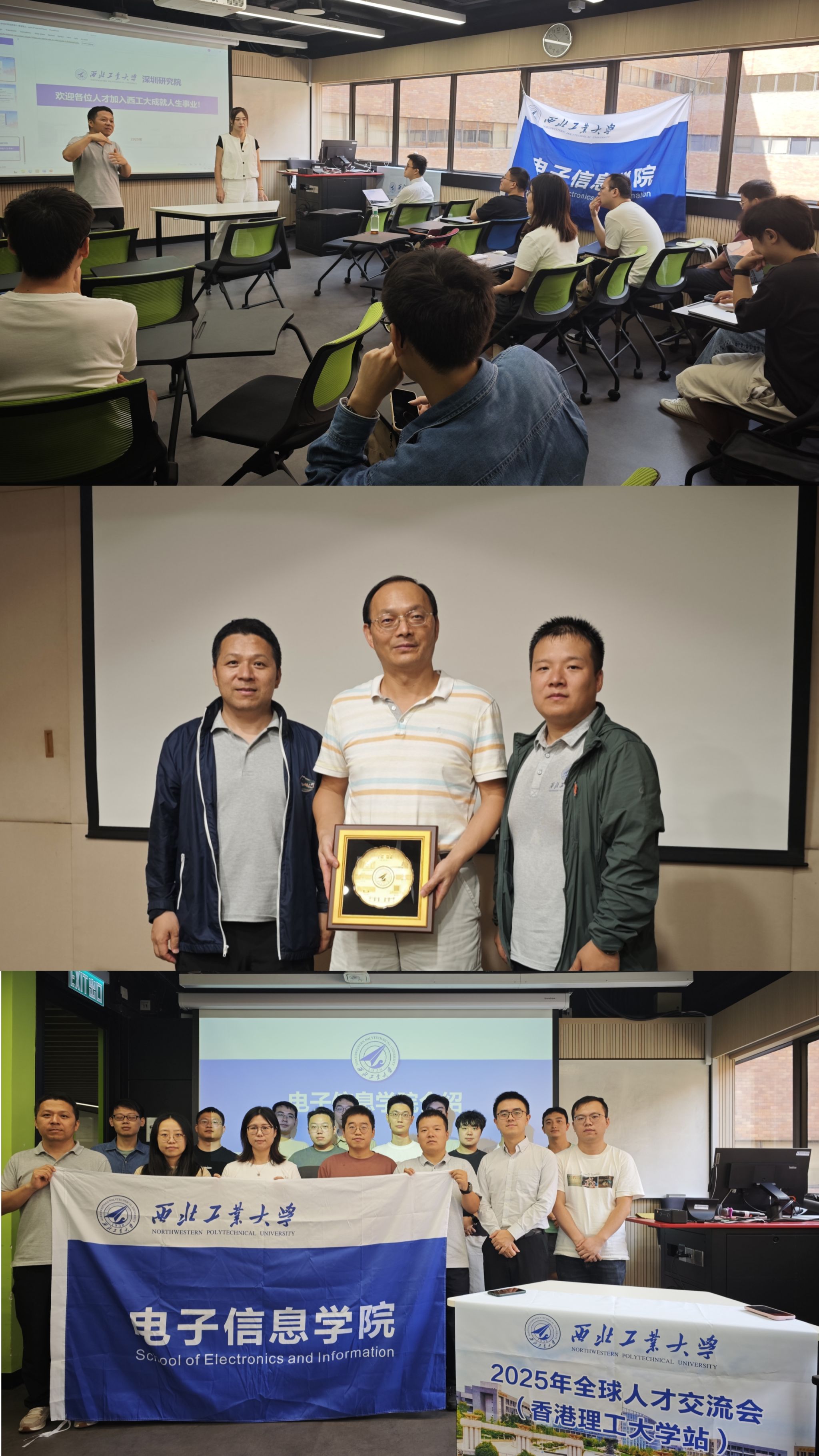 9月25日至9月26日,学院联合西工大深圳研究院在香港理工大学与该校电气与电子工程学院团队开展交流。现场就学校及学院科研启动经费、职称评审绿色通道等引才政策进行详细解读,深圳研究院产教融合部部长冯琳补充介绍深研院专项支持政策。20余名博士及博士后参加交流活动,现场气氛热烈。随后,代表团前往香港中文大学,与高式昌教授及课题组博士生聚焦5G/6G通信系统与微波遥感应用等领域展开交流,双方就相关领域的前沿技术、研究难点等问题进行了深入探讨,并结合各自研究方向提出合作设想。