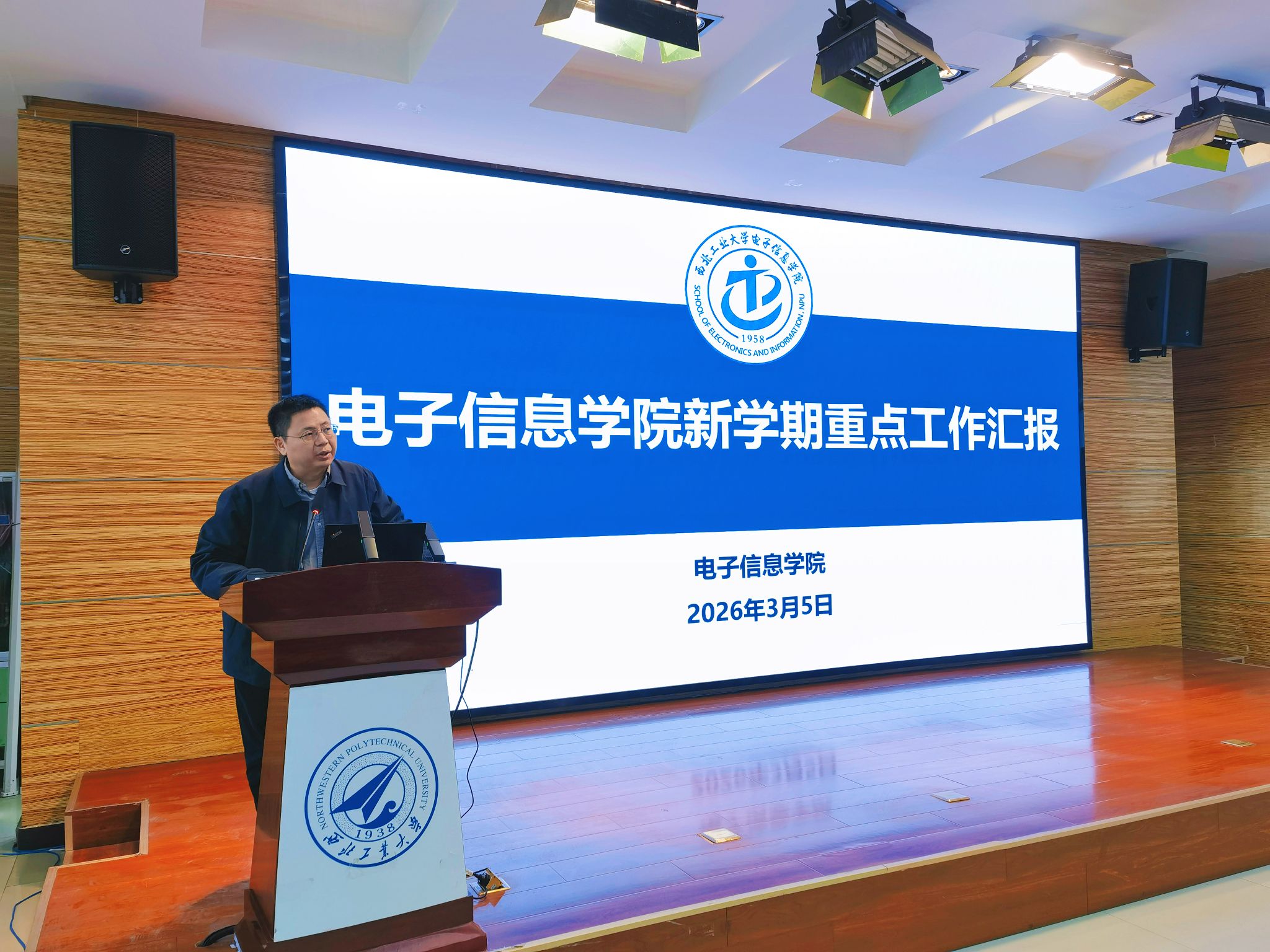 侯俊传达了学校2026年寒假务虚会和春季新学期中层干部会会议精神。重点解读了李言荣书记关于“十五五”规划落地、基础研究提升、干部执行力建设的重要讲话精神,及宋保维校长部署的九大重点工作要求,深入阐释了学校“一十百千”核心发展指标的内涵意义,强调学院要深刻把握学校“高质量、高水平、高标准”发展总基调,切实把思想和行动统一到学校决策部署上来。他指出,2026年是“十五五”开局关键之年,学院要立足电子信息学科特色,将会议精神转化为支撑学院发展的务实举措,以“时时放心不下”的责任心筑牢发展根基,以“事事心中有底”的执行力推动各项工作落地见效。