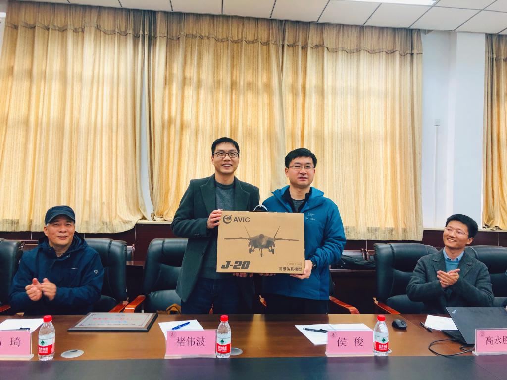 接着,在余姚中学领导和我校师生的见证下,浙江省招生组组长高永胜现场签署了优质生源基地协议,侯俊书记向余姚中学授牌“优质生源基地”,并赠送我校校友杨伟担任总设计师的歼-20飞机模型,褚伟波副教授作为余姚中学校友代为接牌。