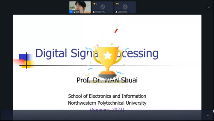 “学在工大——全球暑期开放课堂”项目。在国际教育学院的指导下,经过前期精心筹备,学院根据学科特点和专业特色,围绕前沿研究专题,于7月9日-7月21日面向海外学生开设了全球暑期开放课堂——《Digital Signal Processing》(数字信号处理),课程由万帅教授主讲,张易凡副教授担任助教。本课程主要通过全球融合式教学平台(OMO)进行线上授课,辅以Quizizz平台进行互动测试,受到海外知名高校学生欢迎,吸引了来自俄罗斯、埃及等多个国家的学生在线参与学习。
