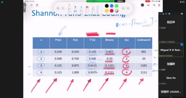 许茜副教授担任助教老师。本课程重点向学生介绍信息论的原理和应用,包含基础理论和典型实例,以及信息论与当代数据压缩、数据通信和数据科学结合的应用内容。Rodrigues 教授的在线授课不仅丰富了学生对信息论原理的理解,更重要的是让学生掌握了信息论在数据通信、数据安全和隐私方面的应用。同时,紧跟热点主流,通俗易懂地讲解了机器学习的基础知识以及信息论在机器学习中的应用,让学生对机器学习以及机器学习与通信的结合有了更进一步的认识。