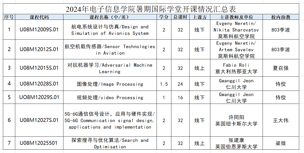 将于今年暑期继续开展暑期国际学堂课程活动,邀请来自莫斯科航空学院、英国伯恩茅斯大学、纽卡斯尔大学、意大利热那亚大学、韩国仁川大学等海外知名院校的8位专家进行授课。课程面向全校本科生和研究生开放,所有课程均采用英文授课。